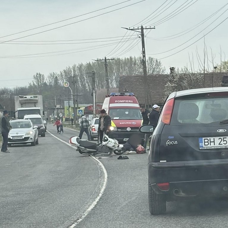 Sâmbătă dimineață, pe strada Cadea Mică din Săcueni, a avut loc un accident rutier în care au fost implicate un moped și un autoturism. Din cauza coliziunii, mopedistul a fost transportat la spital pentru a beneficia de investigații medicale.