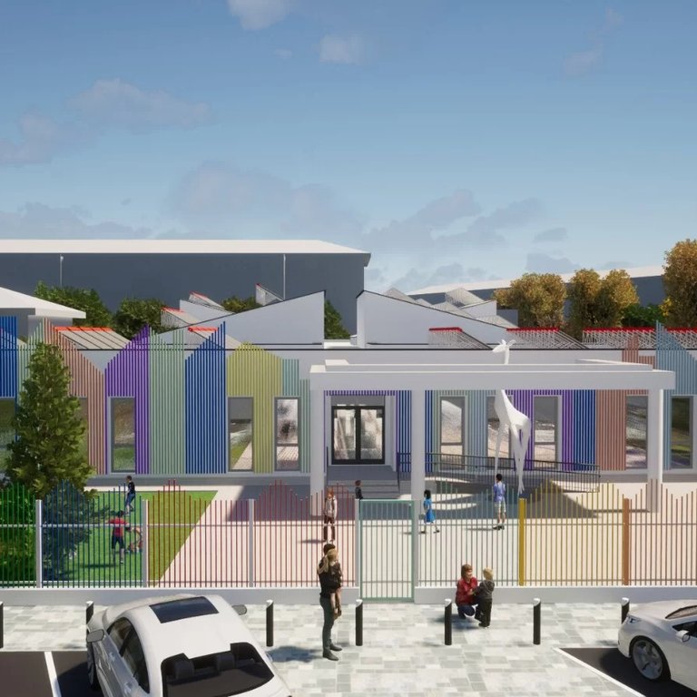 Un aspect inovator al acestui proiect este integrarea soluțiilor energetice verzi, inclusiv panouri fotovoltaice și solare pe acoperiș, menite să reducă costurile cu utilitățile. Creșa va beneficia, în plus, de un spațiu de joacă în aer liber.