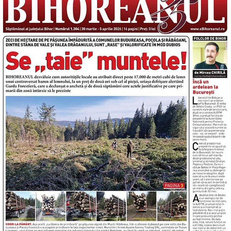 Luni, 30 martie, a fost lansată o nouă ediție a BIHOREANULUI, oferind cititorilor o gamă variată de informații exclusive. Printre subiectele abordate se numără tăierea ilegală a peste 17.000 mc de lemn între Stâna de Vale și Valea Drăganului, clasarea cazului doctoriței suspectate că și-ar fi ucis copilul născut în secret, precum și decizia Primăriei Oradea de a interzice sălile de jocuri de noroc în cartiere. De asemenea, un fost ministru al Sănătății este acuzat de malpraxis de o pacientă din Bihor, iar trei orădeni au realizat primul Tur al României pe biciclete.